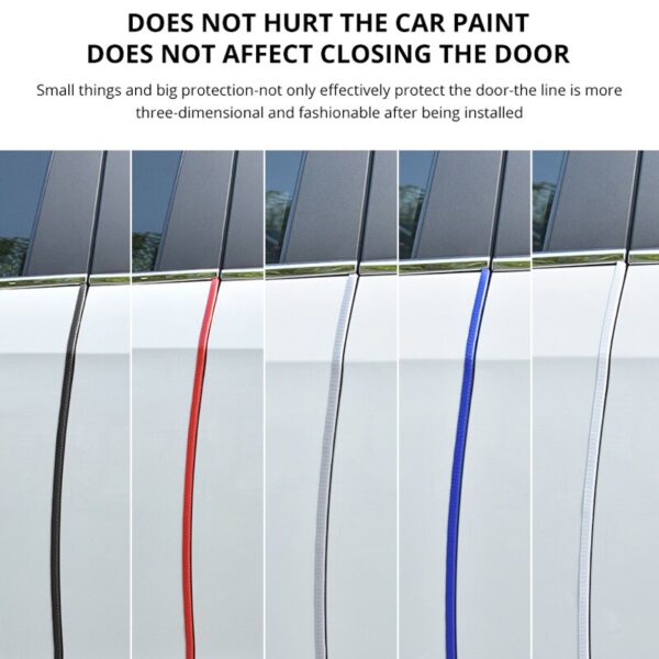Universal car door anti-collision strip Product weight: 380g 5m / bag Material: PVC + Metal Size: 5 meters 5 colors: black red gray white blue