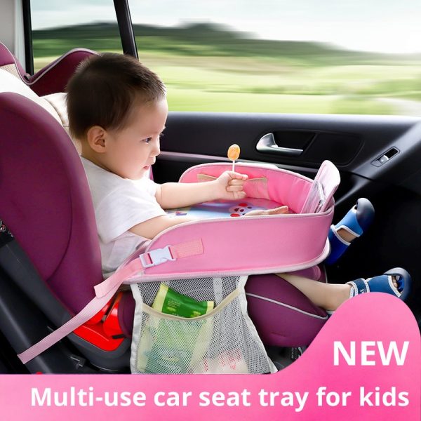 - Adjustable back strap keeps tray secured to kids.